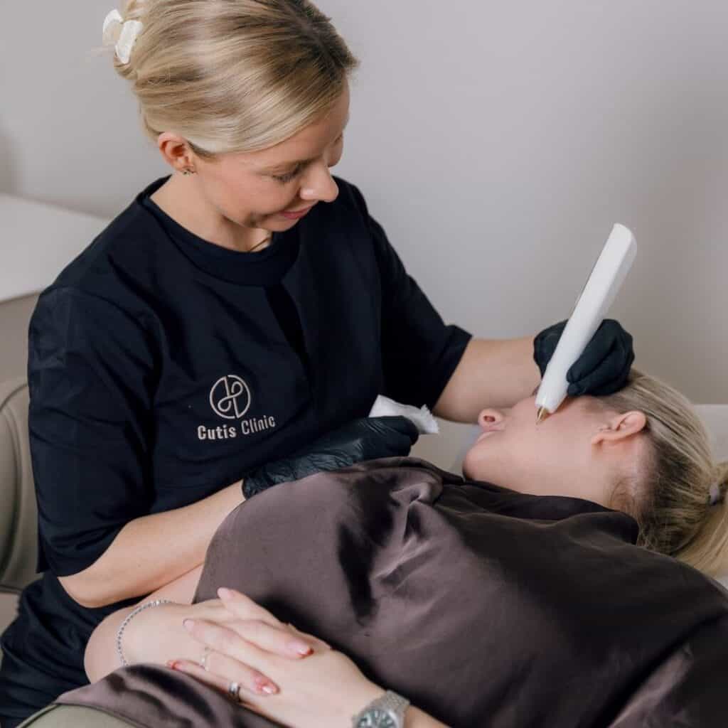 Før behandlingen vurderer behandleren din hud, dine behov og dine forventninger. Her afgøres også, om behandlingen er velegnet til dig.